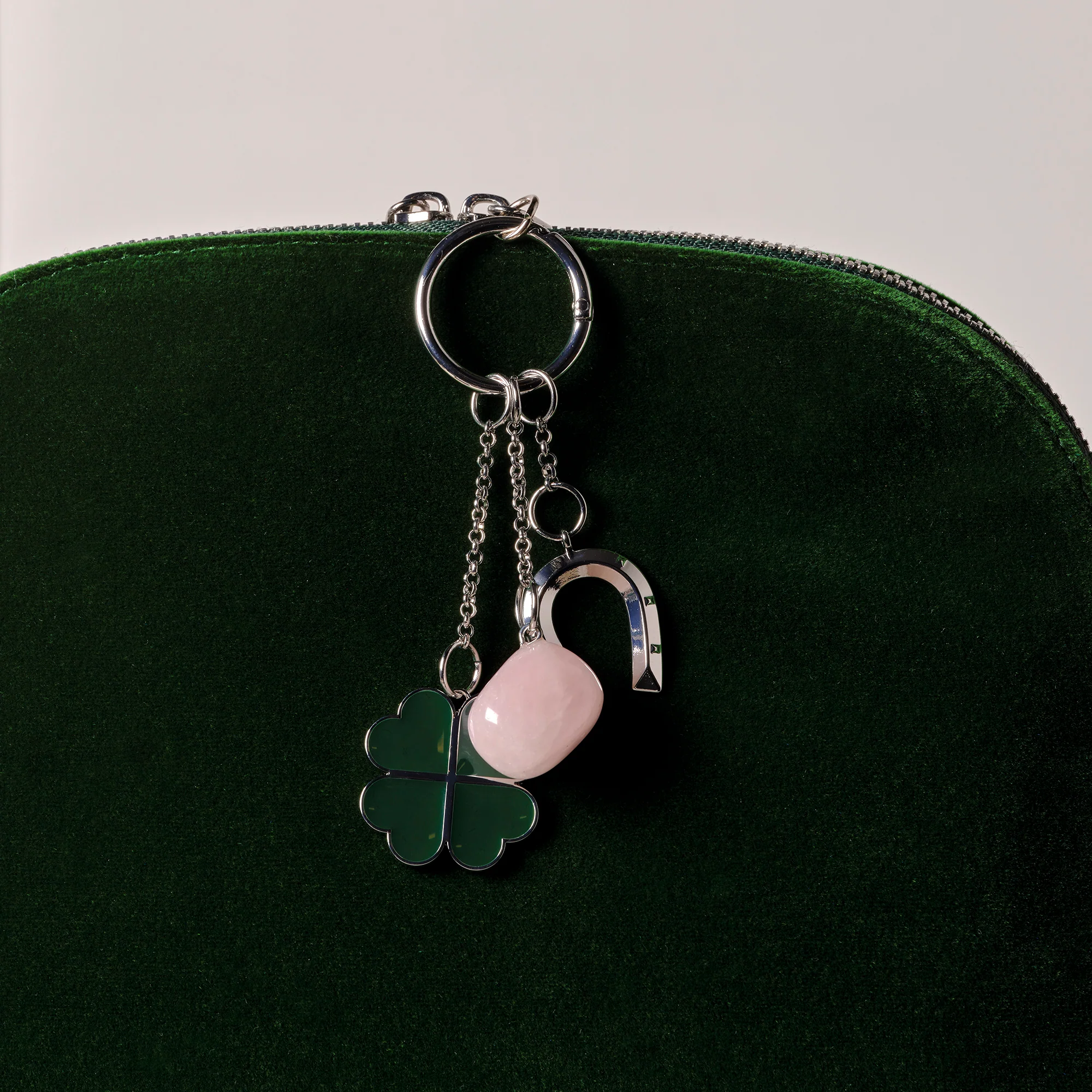 This season, Oh My Cream has teamed up with the ultra-chic Mathilde Favier—author of the book *Mathilde à Paris*—to create the perfect beauty kit for the super-busy Parisian woman seeking a natural glow. A half-moon-shaped, emerald green kit, accompanied by a “lucky charm” keychain, featuring her 6 favorite in-and-out products—easy to incorporate into your routine and use on the go!